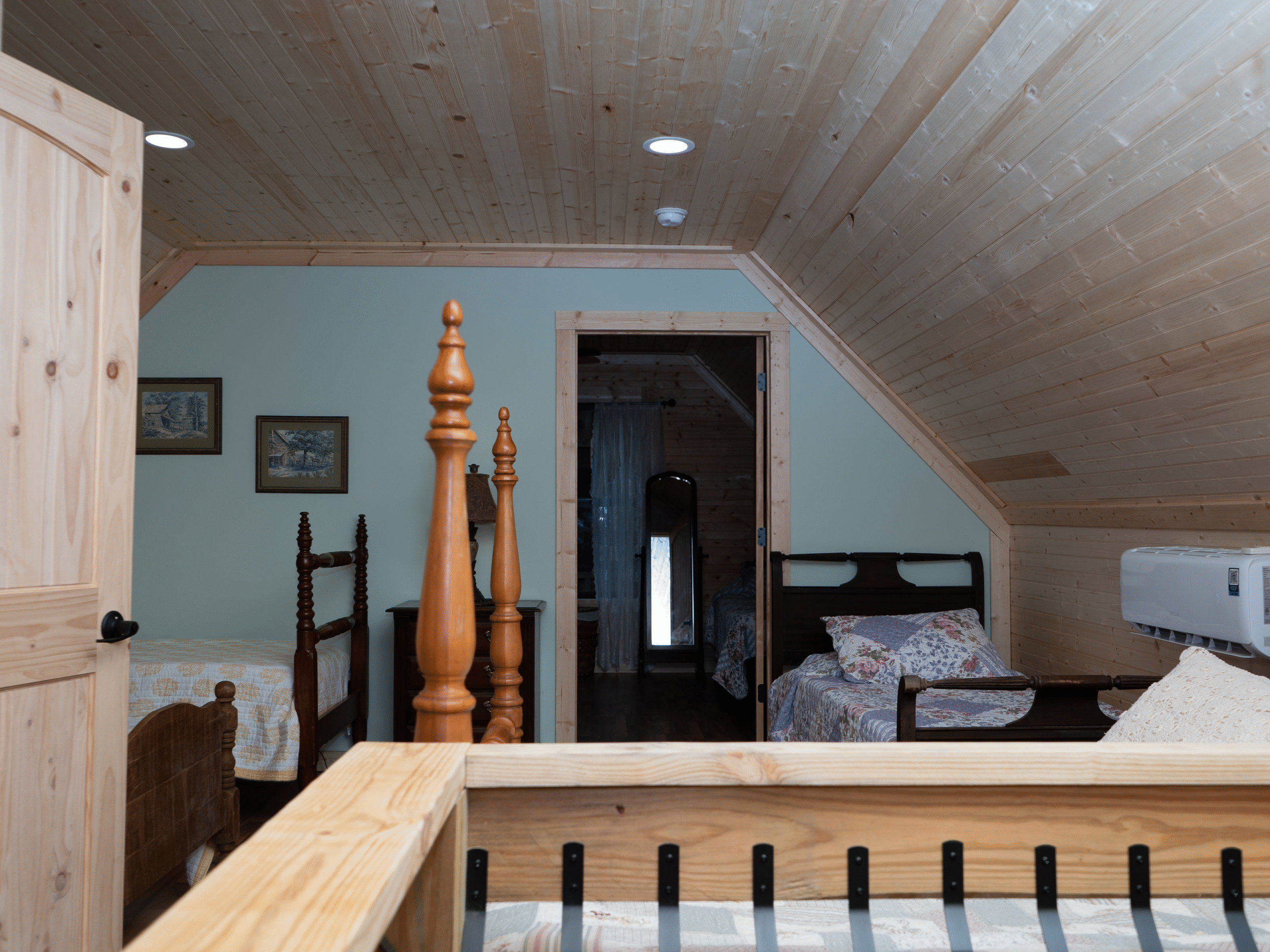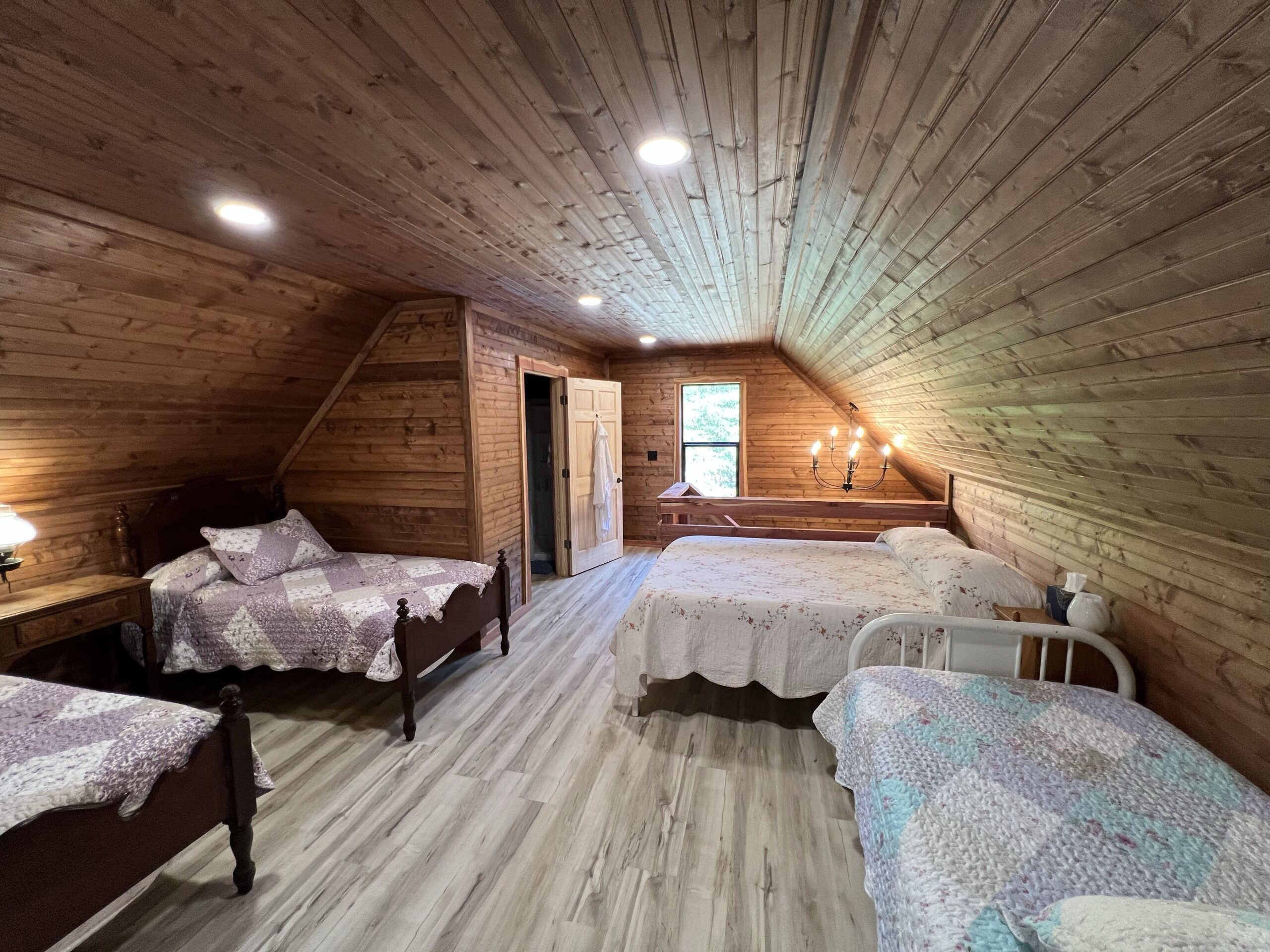 Located just off our farmhouse library, The Sweetie offers a warm and inviting atmosphere. The suite features a queen-size bed, a comfortable sitting area, and a secondary bedroom with two twin beds. The private bathroom has a shower for your convenience. With space for 3-4 guests, The Sweetie provides the perfect setting for a quick girlfriend getaway, combining comfort with the charm of a traditional bed and breakfast experience.